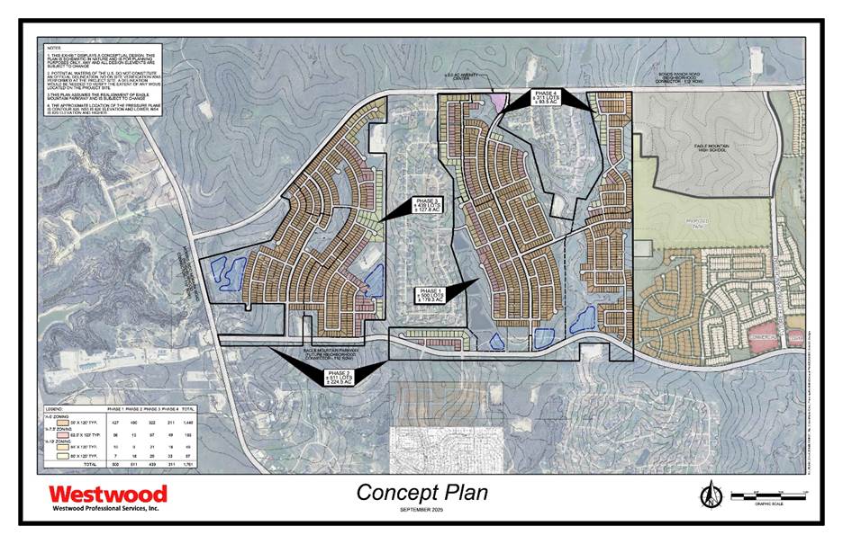 Rio Claro joins other Centurion American residential communities, including the adjacent Estates at Eagle Mountain located at the northeast corner of Morris Dido and Bonds Ranch Road, which brings the luxurious lake lifestyle to a new generation of homeowners. The Estates at Eagle Mountain is a 836-acre development which will incorporate 1,126 large lots which run from 15,000 sf to 30,000 sf. The combined communities cover almost 1,500 acres and will be home to approximately 3,000 single-family lots. Phase One of development is expected to begin soon, with lot delivery to builders anticipated in Q1 2027.