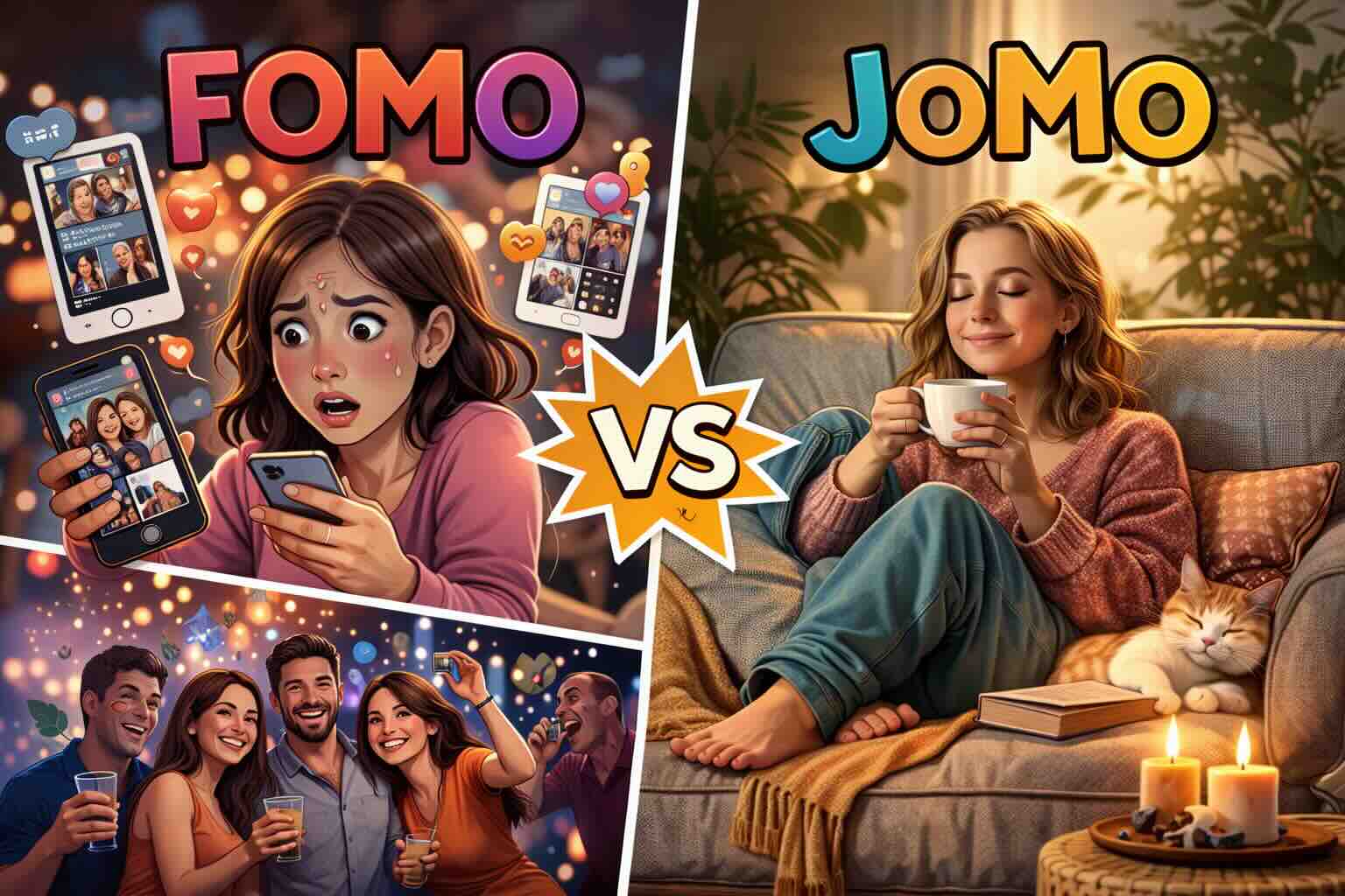 Imagine two scenarios. In the first, you attend a crowded party where you know three people, shout over music, and check your phone every eight minutes. In the second, you sit on your couch, order takeout, and watch a movie you’ve been meaning to see. FOMO insists the first is superior. JOMO gently suggests the second might actually be better. JOMO is not about becoming a hermit (though hermits probably have excellent sleep schedules). It’s about intentionality. It asks a radical question: “Do I actually want to do this?” Not “Will this look good?” Not “Will I regret missing it?” Just: “Is this for me?”