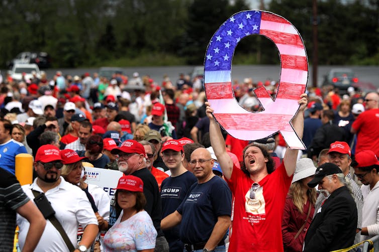 The conspiracy originated in 2017, when a mysterious poster named “Q” began posting to the internet message board 4chan. Q soon amassed a following, but it wasn’t until the pandemic that its popularity exploded. Q’s near-daily posts detail the existence of a satanic cabal of pedophiles that secretly control the government and other institutions. They promise that the enterprise, run by Democrats and celebrities, will soon be taken down by Trump.